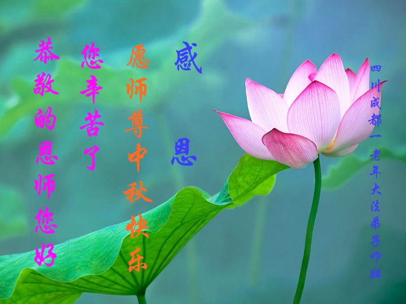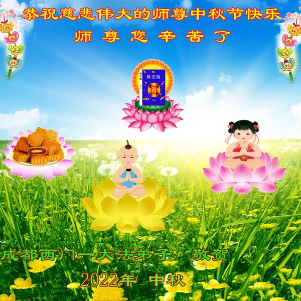 弟子一定按师尊要求努力精進,正念正行,做好三件事,助师正法,完成大法弟子的使命。叩拜师尊! 四川省成都大法弟子恭祝师尊中秋节快乐!