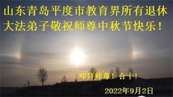 山东省青岛平度市教育界所有退休的大法弟子敬祝师父中秋节快乐!