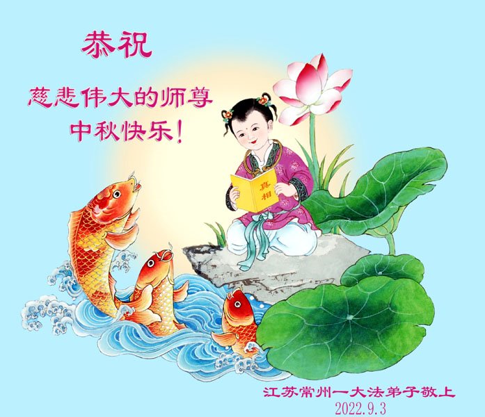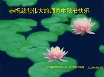 【明慧网二零二二年九月八日】 江苏省常州市俩大法弟子恭祝慈悲伟大的师尊中秋节快乐!