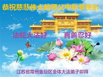 江苏省盐城市阜宁县全体大法弟子合十叩拜! 江苏常州市一个学法小组大法弟子恭祝师父中秋快乐!