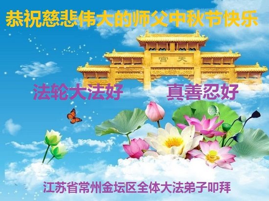 弟子一定不负师尊的慈悲苦度,精進实修,静心学法,发好正念,多救人,做好三件事,证实法,救度众生,无愧正法时期大法弟子这最神圣的称号。惟愿师尊笑。 江苏省常州市金坛区全体大法弟子恭祝师父中秋节快乐!