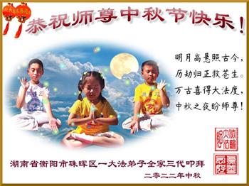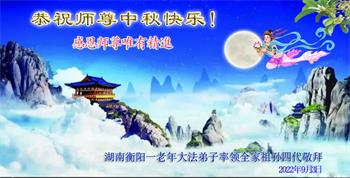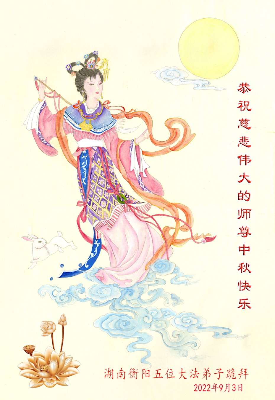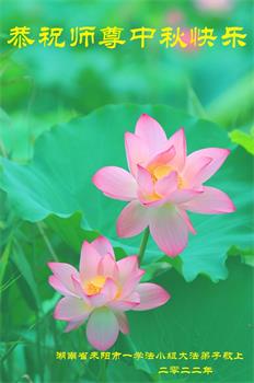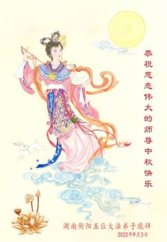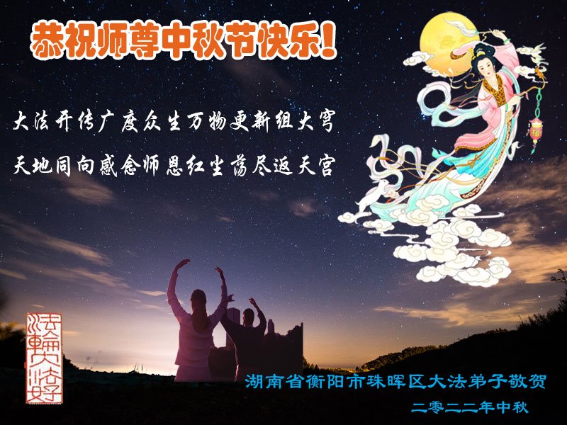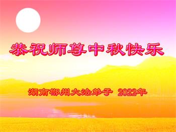 【明慧网二零二二年九月八日】 湖南省衡阳市珠晖区一学法组大法弟子敬贺师尊中秋节快乐!