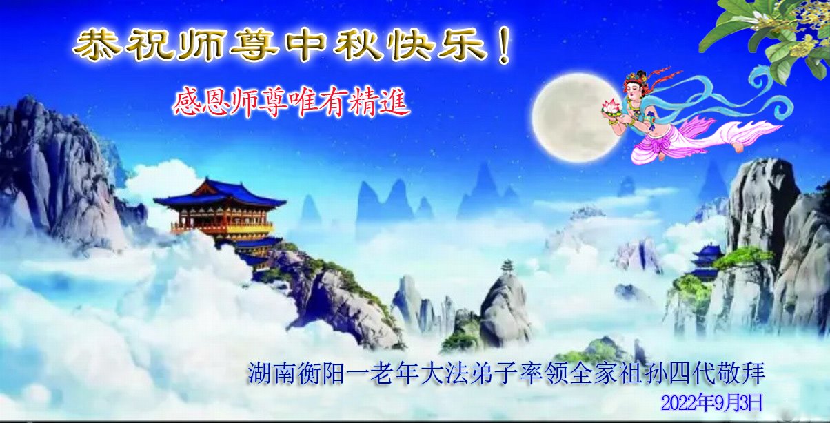 湖南衡阳五位大法弟子跪拜 2022年9月3日 湖南岳阳一大法弟子恭祝慈悲伟大的师父中秋佳节快乐!