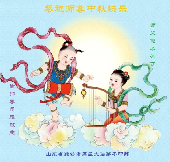 山东潍坊市两位大法弟子恭祝慈悲伟大的师尊中秋节快乐!