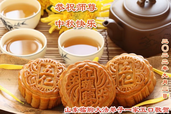 【明慧网二零二二年九月八日】 山东省潍坊市临朐县嵩山一夫妻同修恭祝慈悲伟大的师尊中秋节快乐!