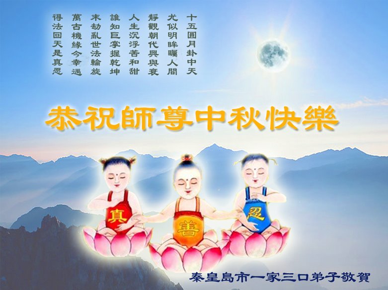 河北秦皇岛市一家三口大法弟子恭祝师尊中秋快乐!