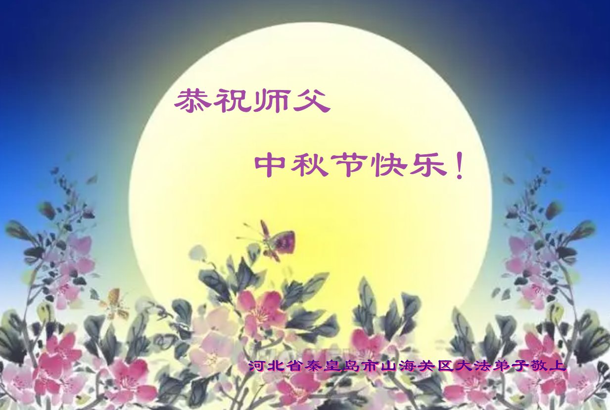 师尊您辛苦了!感恩师尊慈悲救度!弟子在修炼中实实在在的感受到了师尊的慈悲与无所不能,体悟到了师尊时时刻刻都在弟子身边,看护着弟子、点悟着弟子,弟子们让师尊操心了。在所剩不多的时间里,弟子们一定尽力做好三件事,让师尊多一些欣慰,少一点操劳。 叩拜师尊! 河北省秦皇岛大法弟子恭祝师尊中秋快乐!