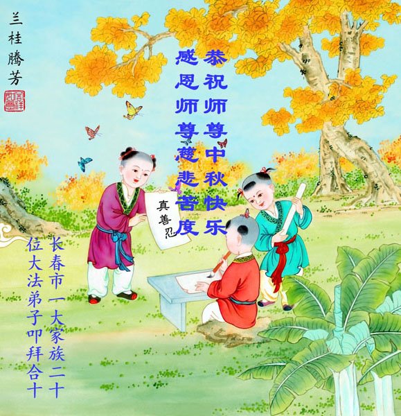 让清风捎去弟子的思念 让月儿送去弟子的祝愿 恭祝师尊中秋佳节快乐 恭祝师尊保重身体康健 弟子感恩的心日月可鉴 弟子归真的心永恒不变 吉林省长春一小区大法弟子及家人恭祝师尊中秋快乐!