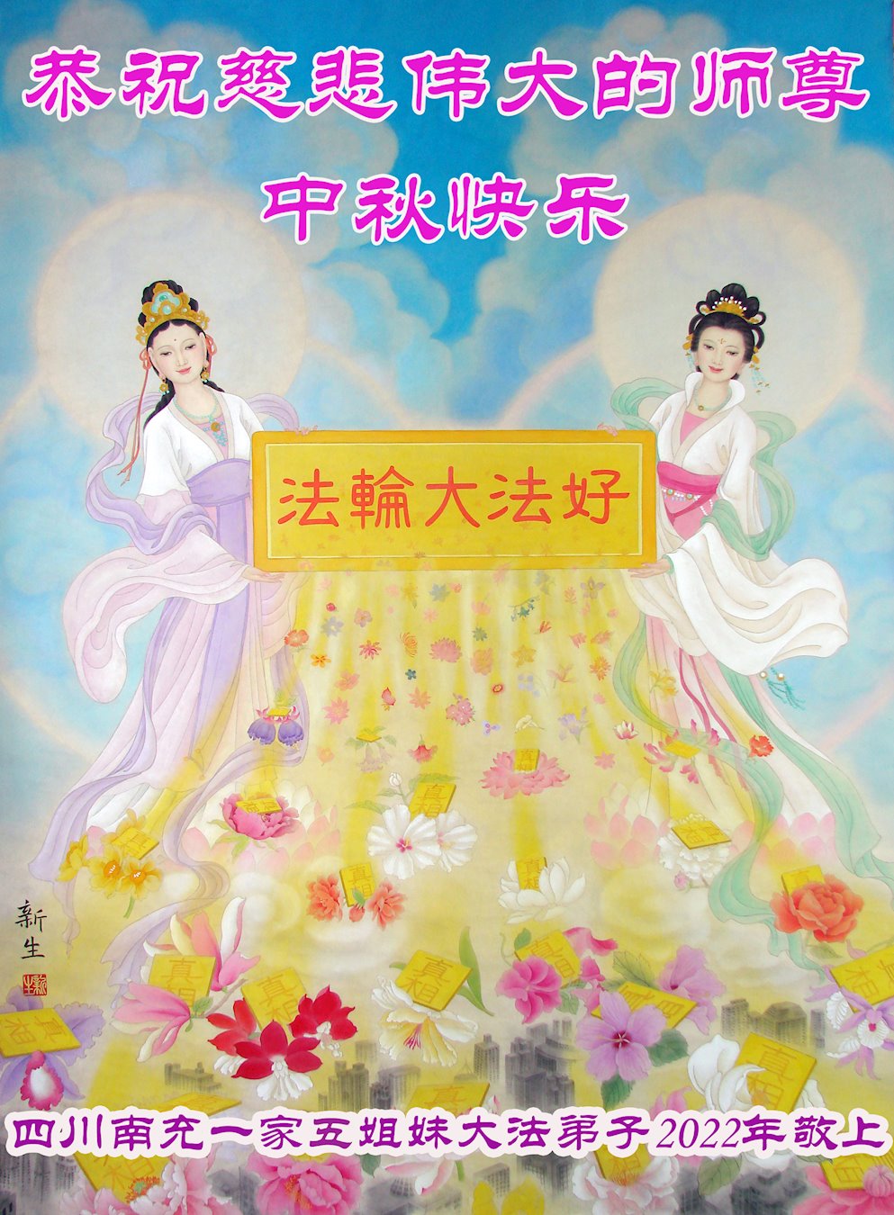【明慧网二零二二年九月八日】 四川南充六家夫妻大法弟子恭祝慈悲伟大的师尊中秋快乐!