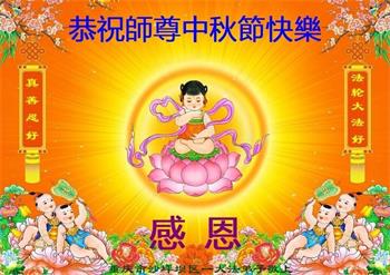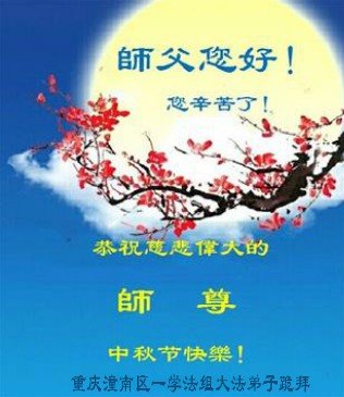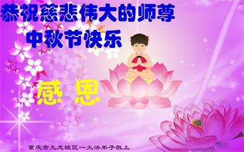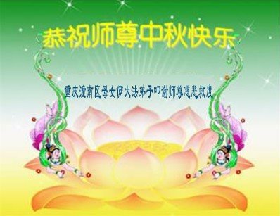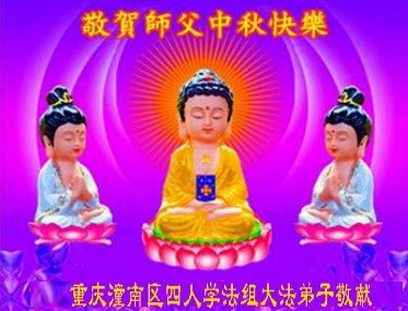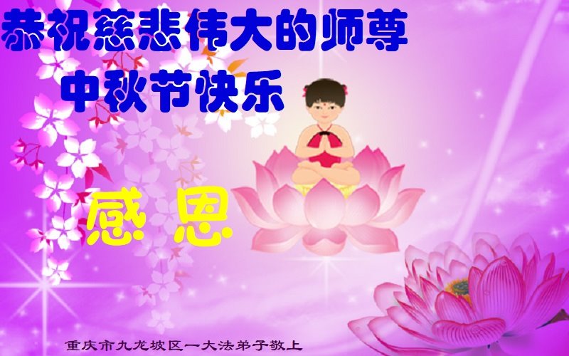 在这中秋佳节即将来临之际,我们全家三代八人恭祝师尊节日快乐!感恩师尊对我们的慈悲保护。叩拜师尊! 重庆大法弟子恭祝师尊中秋节快乐!