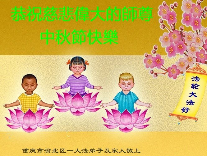 重庆市渝北区一大法弟子及家人恭祝慈悲伟大的师尊中秋节快乐!