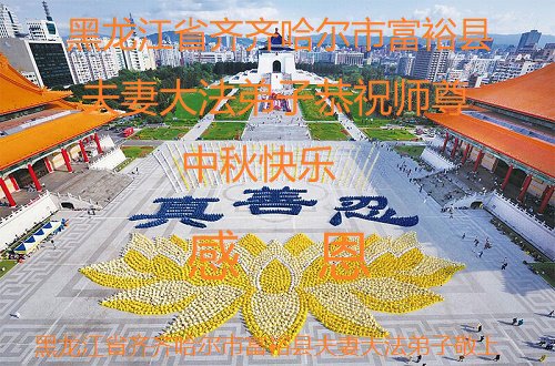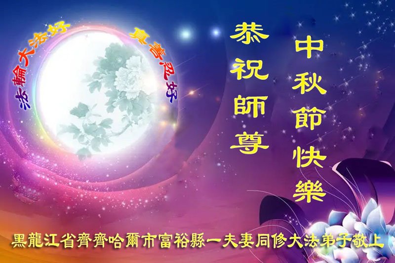 【明慧网二零二二年九月八日】 黑龙江省齐齐哈尔市富裕县一夫妻大法弟子恭祝师尊中秋节快乐!