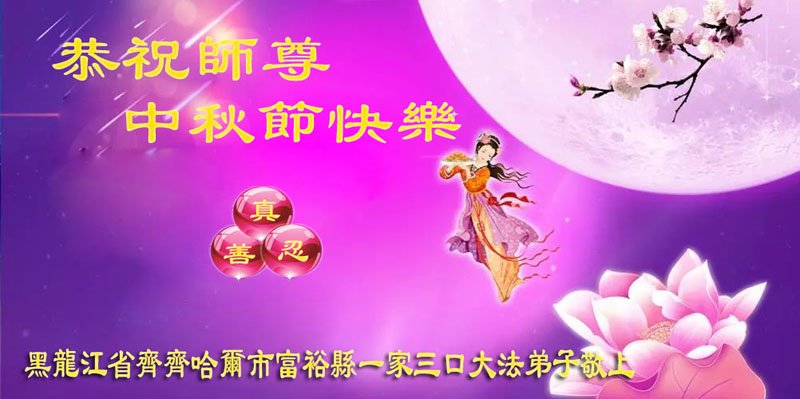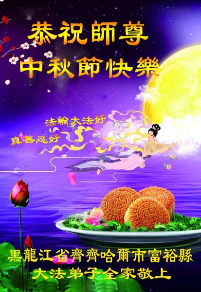 黑龙江省齐齐哈尔市一家大法弟子恭祝师尊中秋节快乐!
