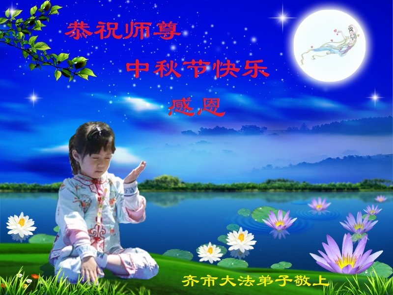 弟子们感恩师父多年来慈悲的保护,使弟子们能够从艰难中走到今天。我们一定好好修炼,多救人,完成助师正法,救度众生的洪愿,请师父放心。 黑龙江省齐齐哈尔大法弟子恭祝师尊中秋节快乐!