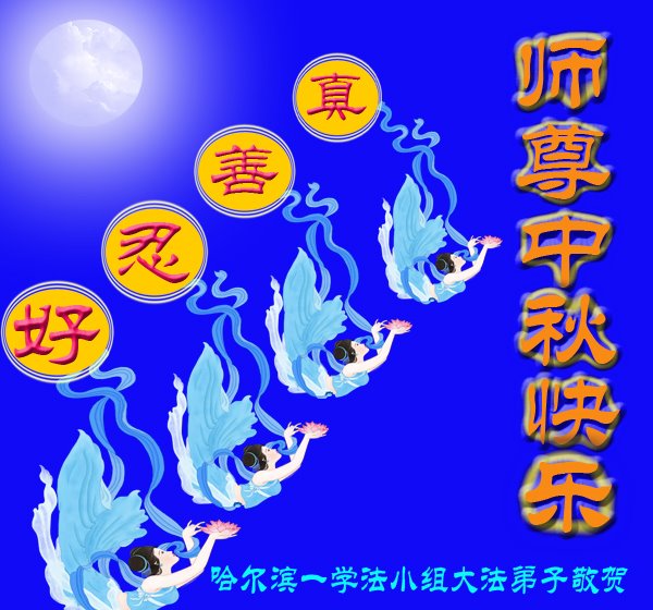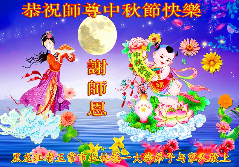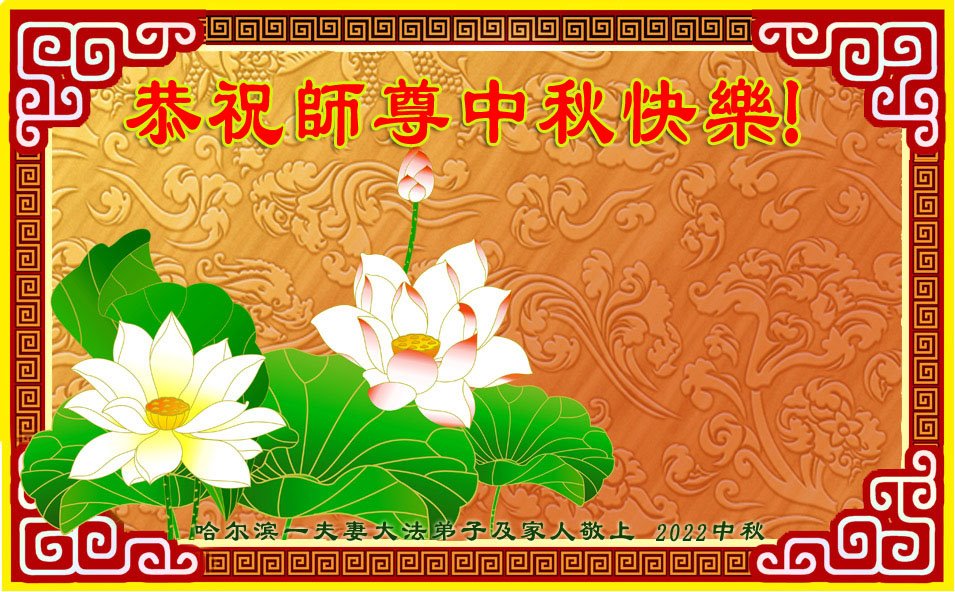 【明慧网二零二二年九月八日】 黑龙江省哈尔滨市一学法小组大法弟子恭祝师尊中秋快乐!