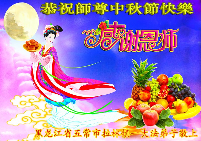 无限感恩 师尊您为弟子的修炼辛苦了 师尊您为众生得救操尽了心 师尊的伟大包容着苍生 大法的光辉赐予生命希望 恭祝师尊中秋佳节快乐 黑龙江省哈尔滨市五常市拉林镇一大法弟子敬上 黑龙江省哈尔滨市一夫妻大法弟子及家人恭祝师尊中秋快乐!