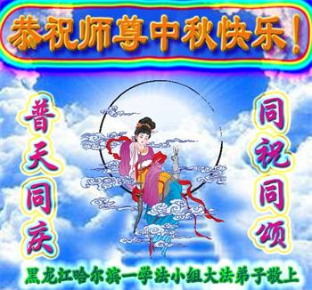 黑龙江省哈尔滨市一学法小组大法弟子恭祝师尊中秋快乐!