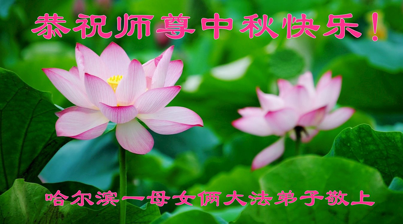 黑龙江省哈尔滨市一母女俩大法弟子恭祝师尊中秋节快乐! 黑龙江省哈尔滨市一夫妻同修恭祝师尊中秋节快乐!