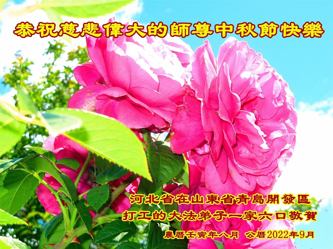 在山东省青岛开发区打工的河北省大法弟子一家六口恭祝慈悲伟大的师尊中秋节快乐!