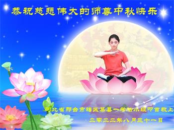 师父您辛苦了!当我迷在红尘的时候,是您找回了我。传我功,传我法,给我新生命;当我在魔难中跌倒的时候,是您扶起了我。不嫌我,不弃我,慈悲救度我。 师父啊,徒儿怎能再执着?师父啊,徒儿从此知精進,不辜负您的嘱托。 河北邢台市某县一学法小组大法弟子恭祝师尊中秋快乐!