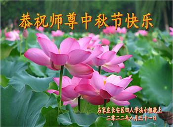 河北新乐大法弟子敬贺 二零二二年八月三十日 河北省石家庄市裕华区四名大法弟子恭祝慈悲伟大的师尊中秋快乐!