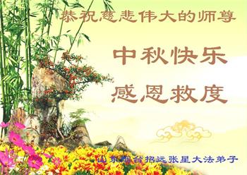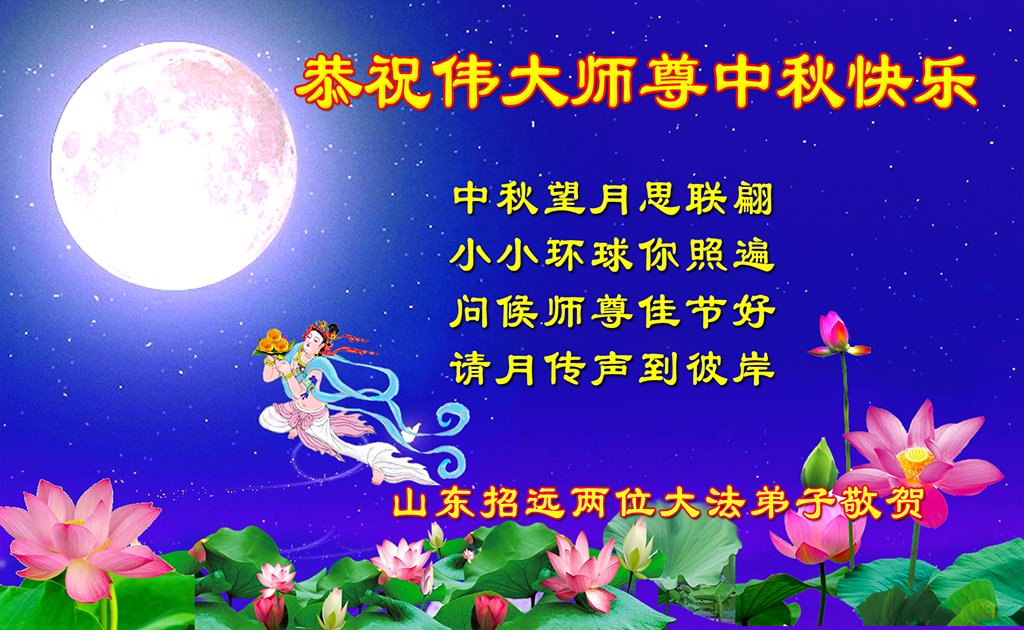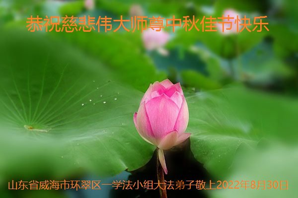 山东省威海市荣成市一学法小组大法弟子向慈悲的师尊致以最诚挚的问候:师父好!感恩师父的慈悲救度!恭祝伟大慈悲的师父中秋节快乐!