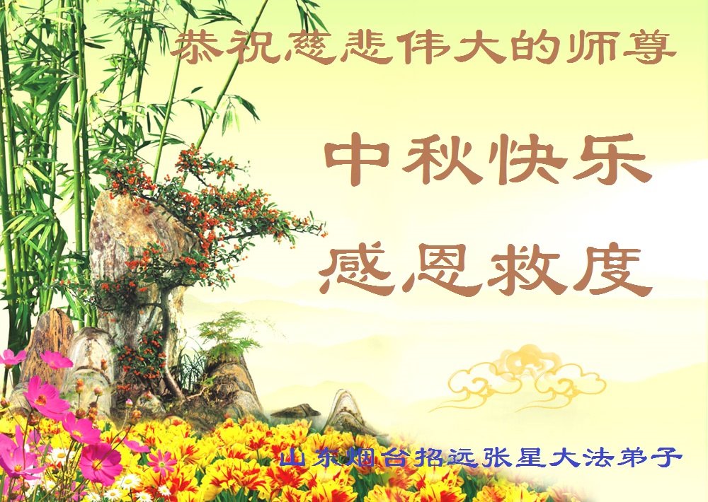 感恩师父把我从地狱捞起,感恩师父的苦心救度。弟子无以回报,只有做好师父叫做的三件事,修好自己。跟师父回家。叩谢师父! 山东省烟台市栖霞一大法弟子恭祝师尊中秋节快乐!