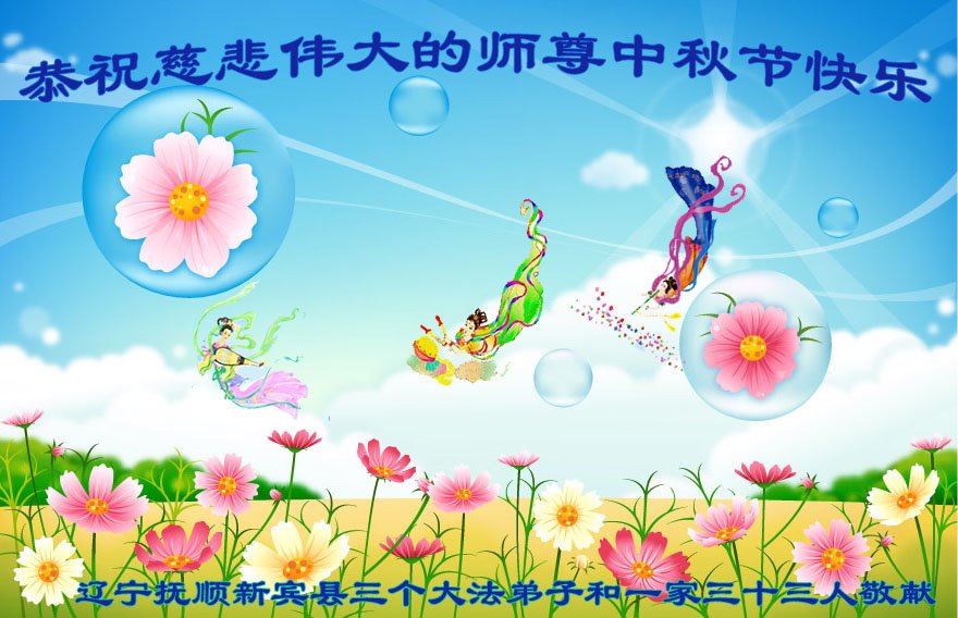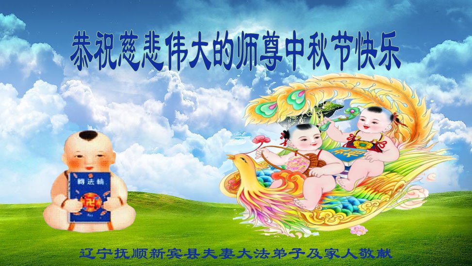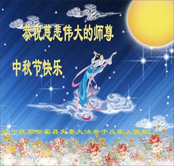 辽宁抚顺新宾县夫妻大法弟子及家人敬献 辽宁抚顺新宾县姐妹大法弟子恭祝慈悲伟大的师尊中秋节快乐!