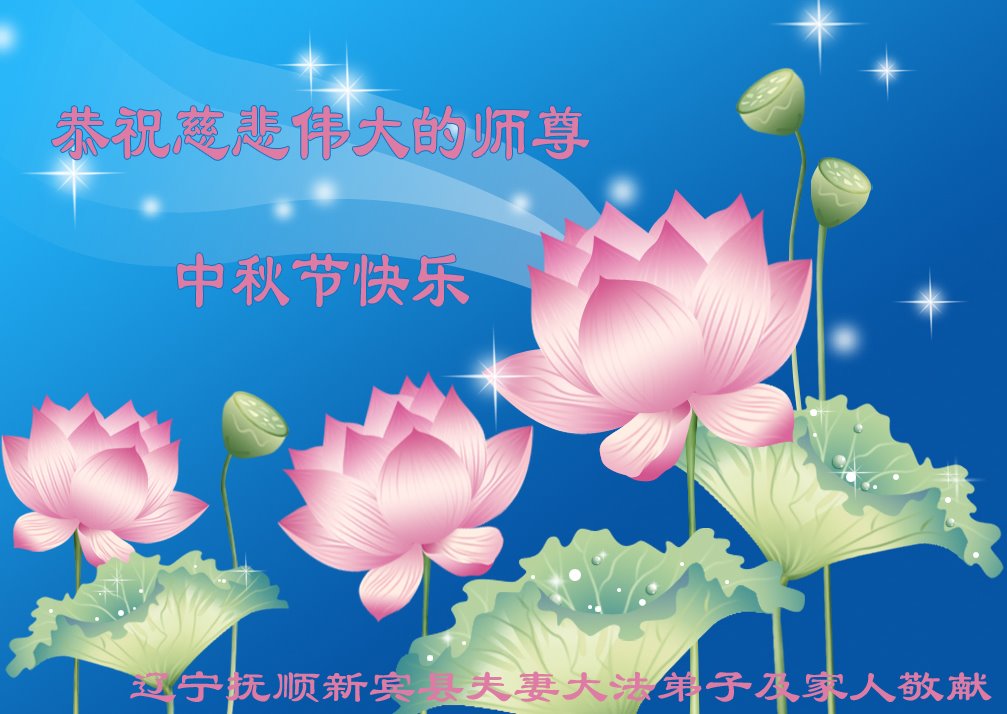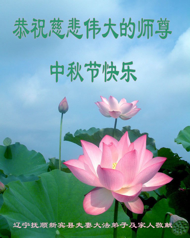 辽宁抚顺新宾县夫妻大法弟子及家人敬献 辽宁抚顺新宾县夫妻大法弟子及家人恭祝慈悲伟大的师尊中秋节快乐!