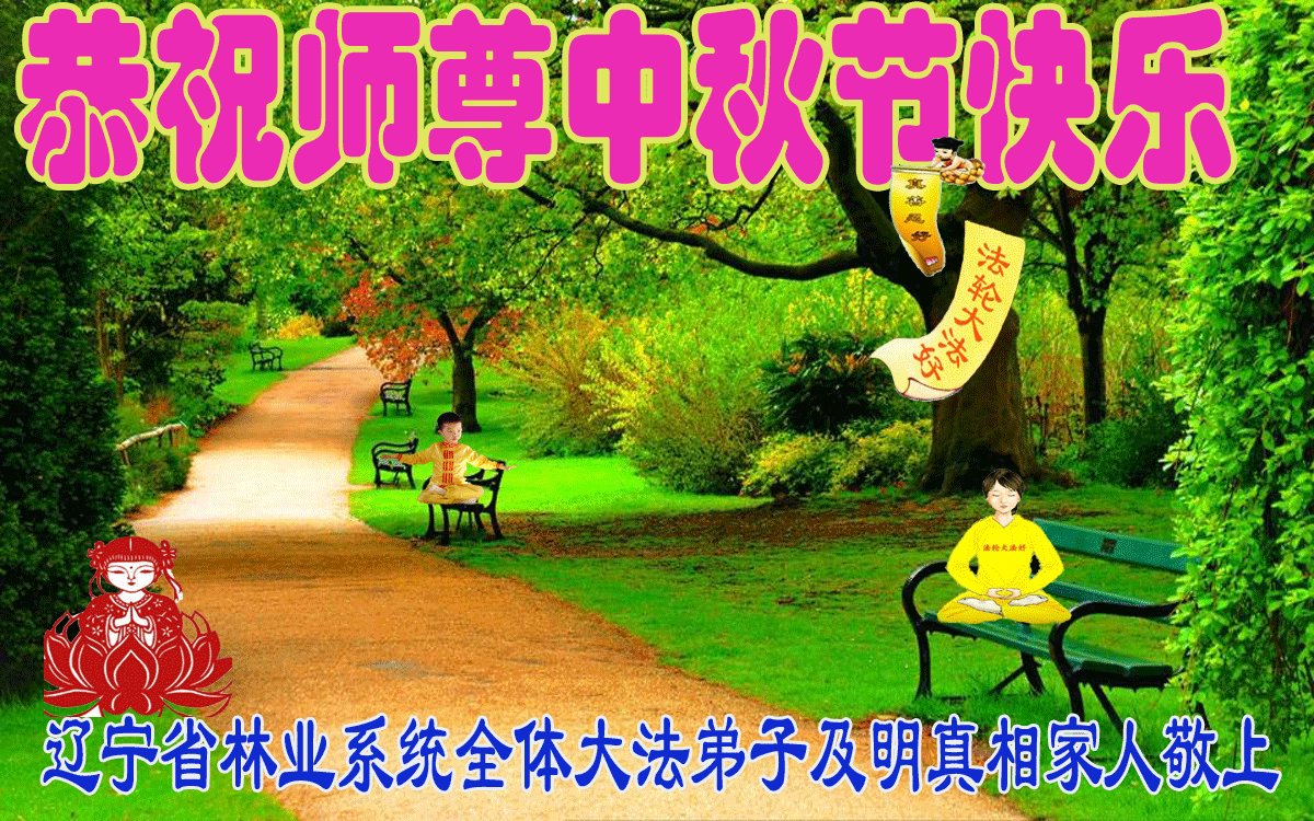 辽宁抚顺新宾县三个大法弟子和全部家人敬献 辽宁省实验林场全体大法弟子及家人恭祝师尊中秋节快乐!