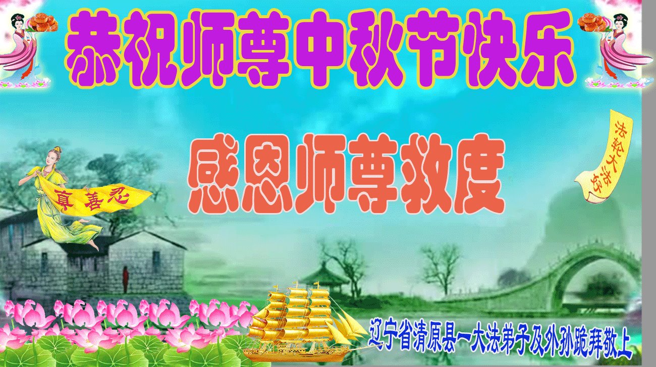 辽宁省清原县一大法弟子及外孙跪拜敬上 辽宁省抚顺市清原县两学法组全体大法弟子及明真相家人恭祝师尊中秋节快乐!