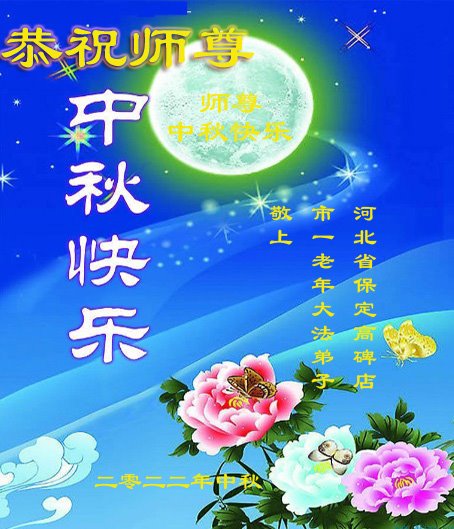 【明慧网二零二二年九月八日】 河北保定阜平一大法弟子恭祝慈悲伟大的师尊中秋节快乐!