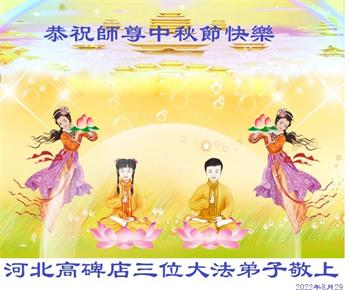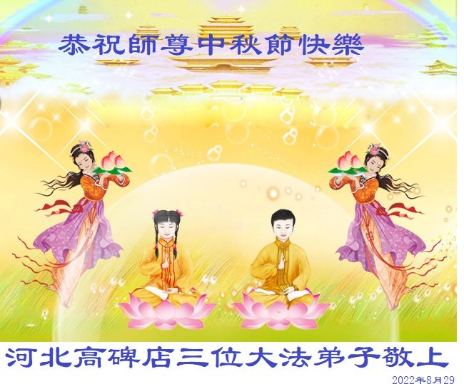 河北保定高碑店三位大法弟子恭祝慈悲伟大的师尊中秋节快乐! 河北保定白沟全体大法弟子恭祝慈悲伟大的师尊中秋节快乐!