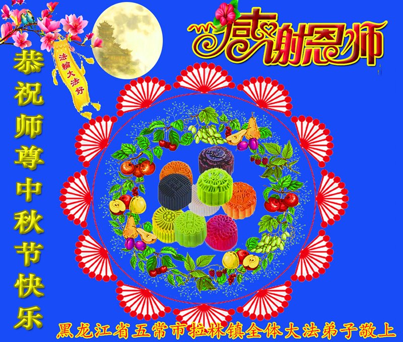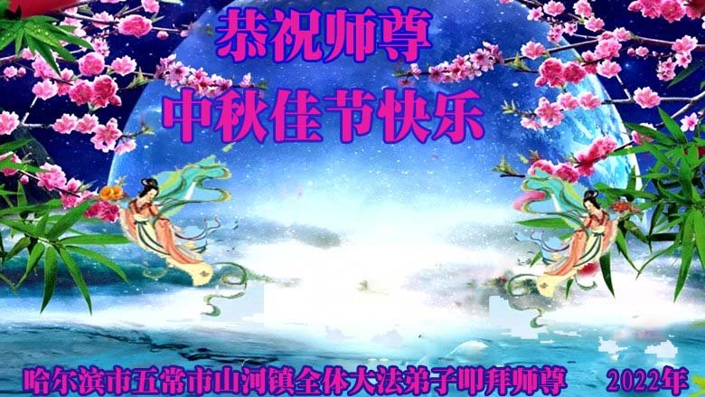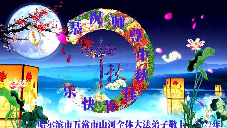 【明慧网二零二二年九月八日】 黑龙江省哈尔滨市五常市山河全体大法弟子恭祝师尊中秋佳节快乐!