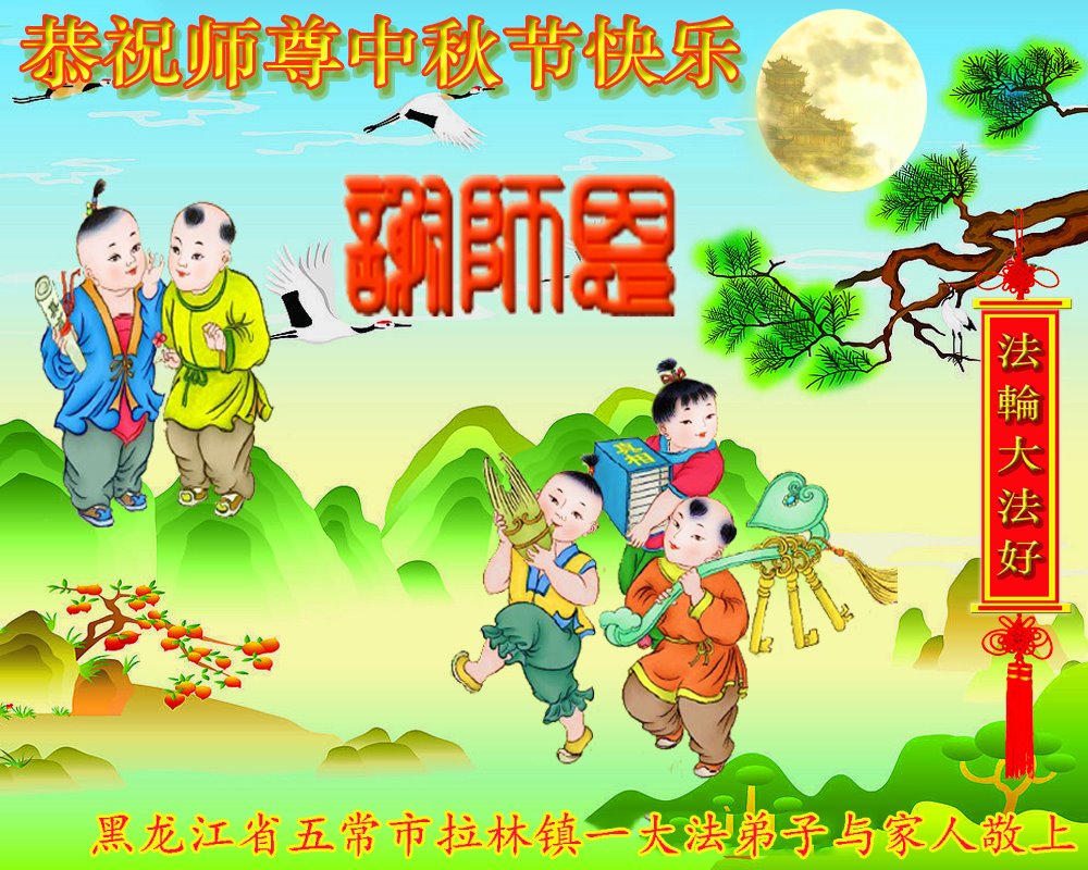 在中秋节即将到来之际,五常市拉林镇全体大法弟子向慈悲伟大师尊问好!恭祝师尊中秋节快乐!感恩师尊!谢谢师尊! 黑龙江省哈尔滨市五常市拉林镇全体大法弟子敬上 黑龙江省哈尔滨市五常市一大法弟子恭祝师尊中秋节快乐!