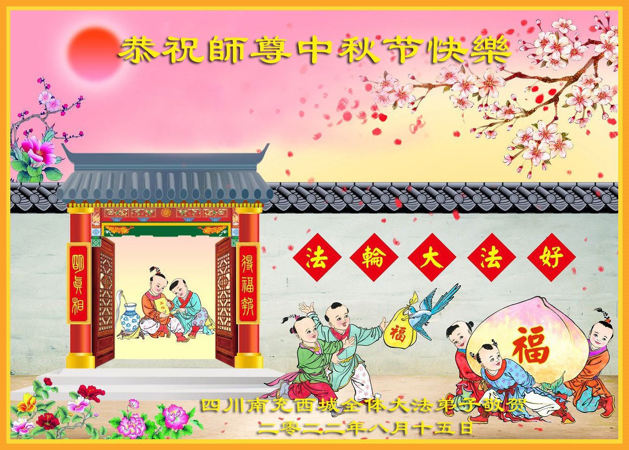 恭祝慈悲伟大的师尊中秋节快乐! 四川省南充市西城全体大法弟子敬贺 二零二二年八月十五日 四川省自贡市全体大法弟子恭祝慈悲伟大的师尊中秋节快乐!