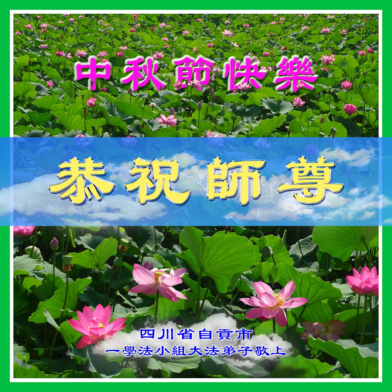 四川省自贡市全体大法弟子恭祝慈悲伟大的师尊中秋节快乐! 师尊您好!您辛苦了!弟子多谢师尊慈悲救度!弟子走正修炼的路,努力做好三件事。惟愿师尊笑!弟子拜谢恩师! 苍宇同庆大团圆 十五星空夜无闲 明月高悬路通天 踏遍神州真相送 真言真念登法船 天地生辉法轮旋 净荷映月意志坚 拜谢恩师慈悲度 苍宇同庆大团圆 四川省自贡市一学法小组大法弟子恭祝慈悲伟大的师尊中秋节快乐!