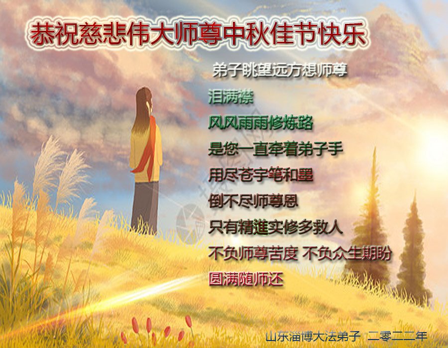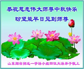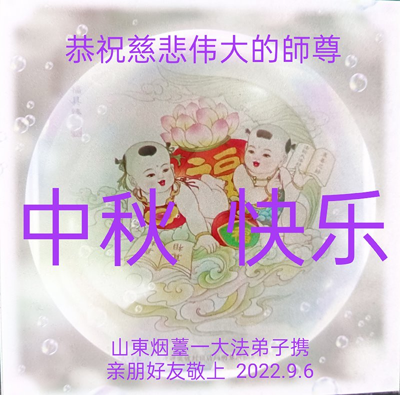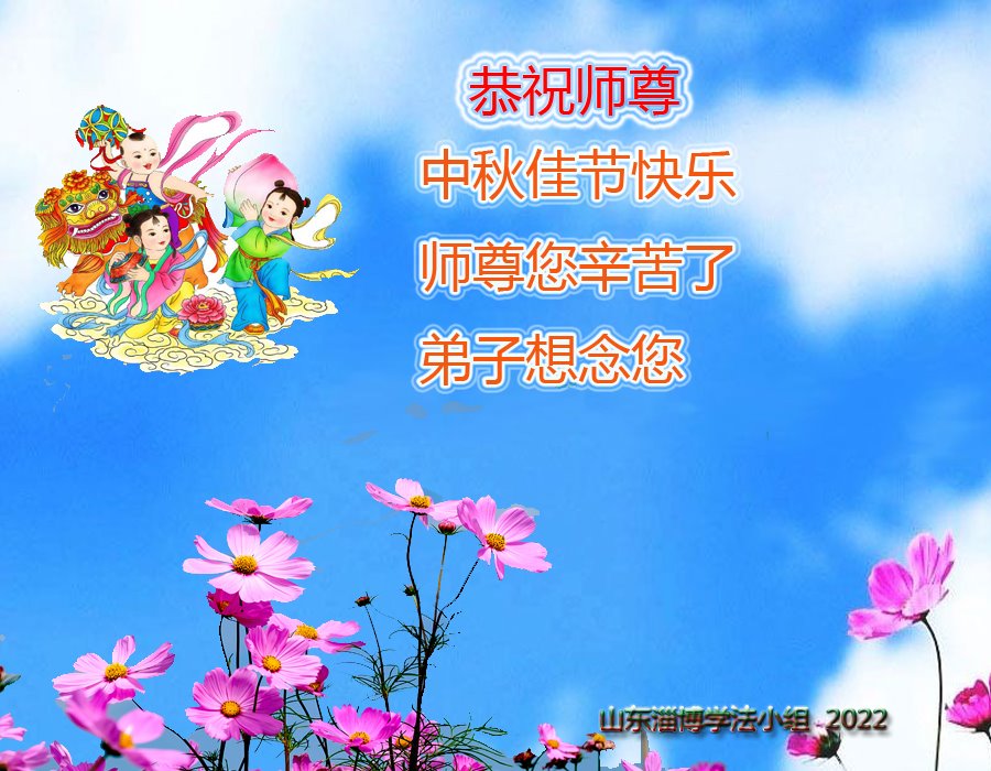 【明慧网二零二二年九月八日】 山东省烟台栖霞市一学法小组大法弟子恭祝师尊中秋节快乐!