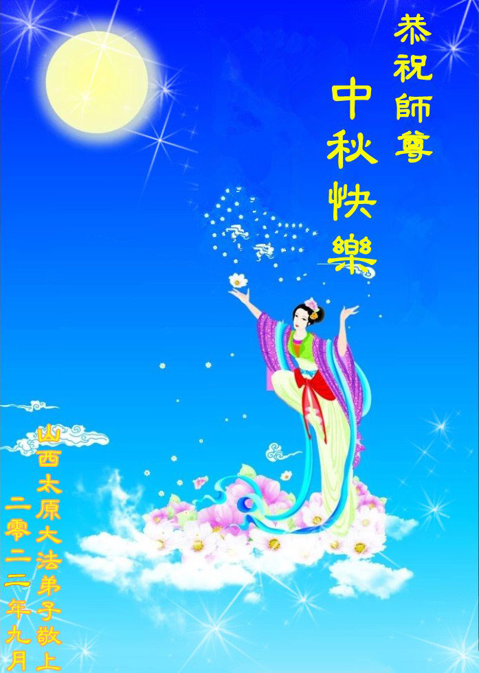 【明慧网二零二二年九月八日】 山西省朔州大法弟子恭祝慈悲伟大的师尊中秋节快乐!