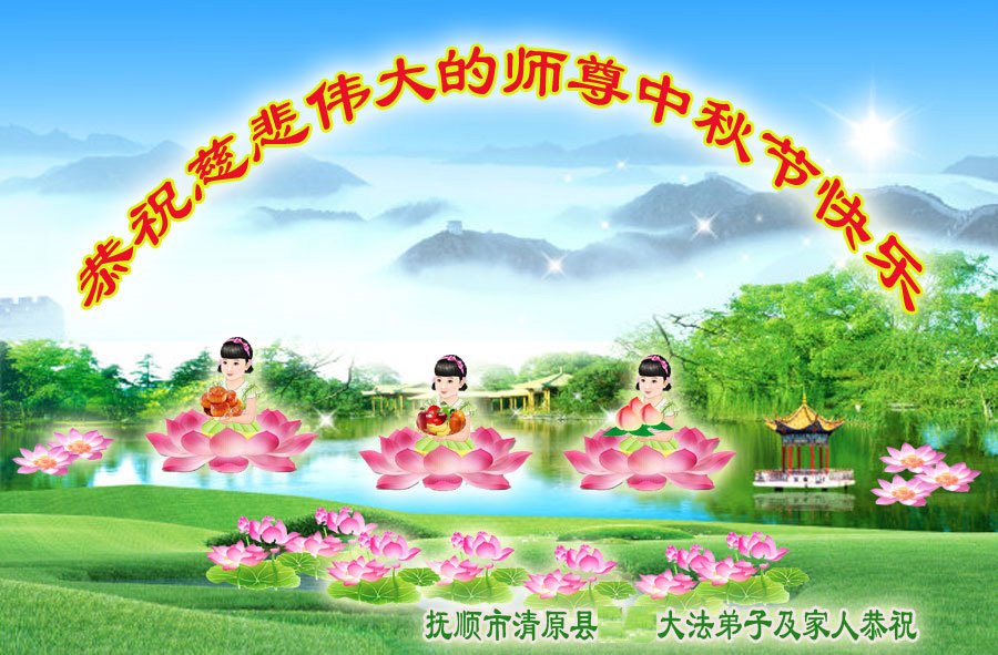 感恩慈悲伟大的师父救度我们,感恩师父佛恩浩荡!千言万语道不尽弟子们对师父的无限感恩,弟子们唯有听师父的话,完成使命,兑现誓约! 弟子们跪拜谢师恩! 辽宁省抚顺市大法弟子恭祝师尊中秋节快乐!感恩师尊慈悲救度!弟子跪拜师尊!