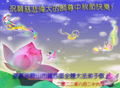 辽宁鞍山铁西区全体大法弟子祝愿慈悲伟大的师尊中秋节快乐!
