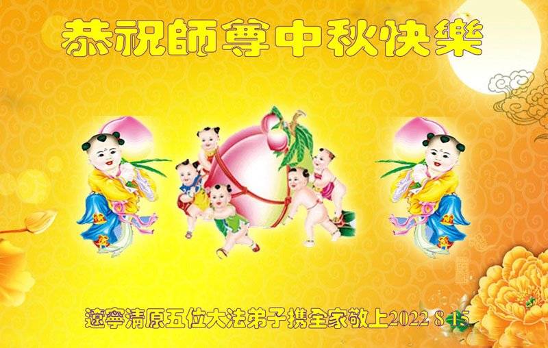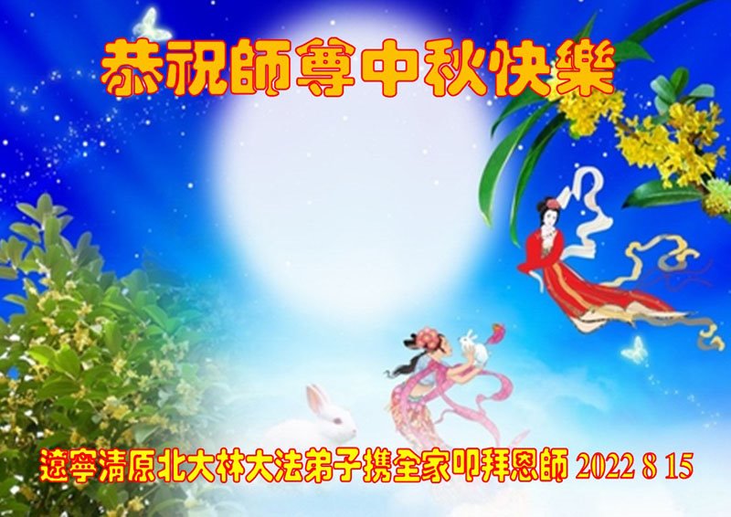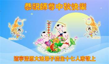 感恩师尊慈悲苦度!弟子们一定紧跟正法進程,达到修炼如初的状态,救度更多的众生,完成大法弟子的史前大愿,不负师尊所望,圆满随师还。 辽宁清原一大法弟子及家人恭祝师尊中秋节快乐!