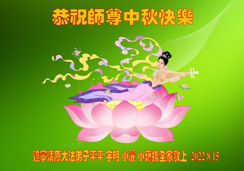 每逢佳节倍思亲,中秋将至,弟子更加想念师尊!人间任何美好的语言都表达不尽弟子对师尊的感恩。在风雨中一路走来,在师尊的慈悲保护下,弟子紧握师尊的手。又到了一个中秋月圆节,弟子感恩师尊的慈悲苦度,师尊您辛苦了!我一定在不断成熟中勇猛精進,珍惜所剩不多的时间,真修、实修、做好三件事,多救人,走好最后的路。不辜负师尊所盼。惟愿师尊笑。 弟子叩拜恩师! 辽宁一家四代大法弟子恭祝师尊中秋节快乐!谢谢师尊慈悲苦度。