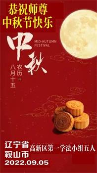 辽宁省鞍山市高新区一学法小组五人恭祝师尊中秋节快乐!