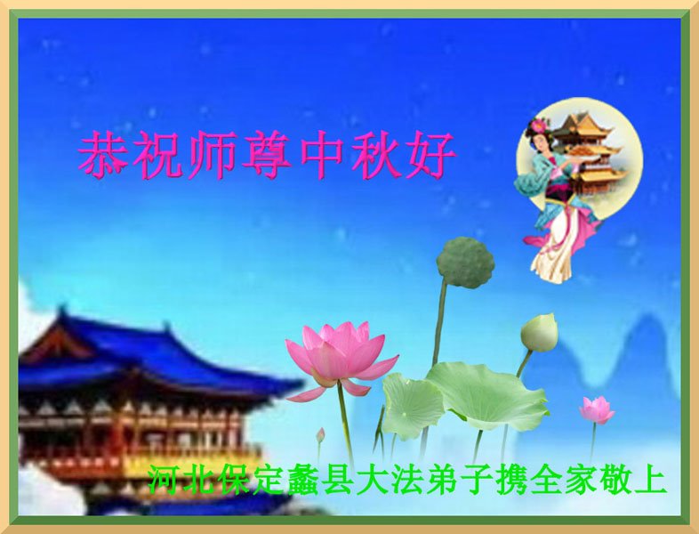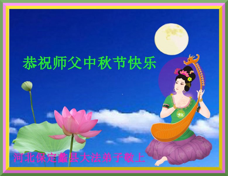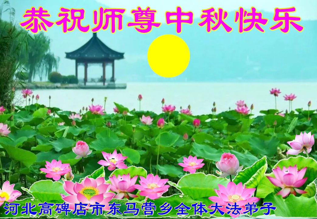 师尊您好!师尊辛苦了!师尊我们想念您!盼望师尊早日回到自己的家园!我们用感恩的心用实际行动去迎接师尊的到来!谢谢师尊! 河北省保定市高碑店市一学法小组大法弟子恭祝师父中秋快乐!