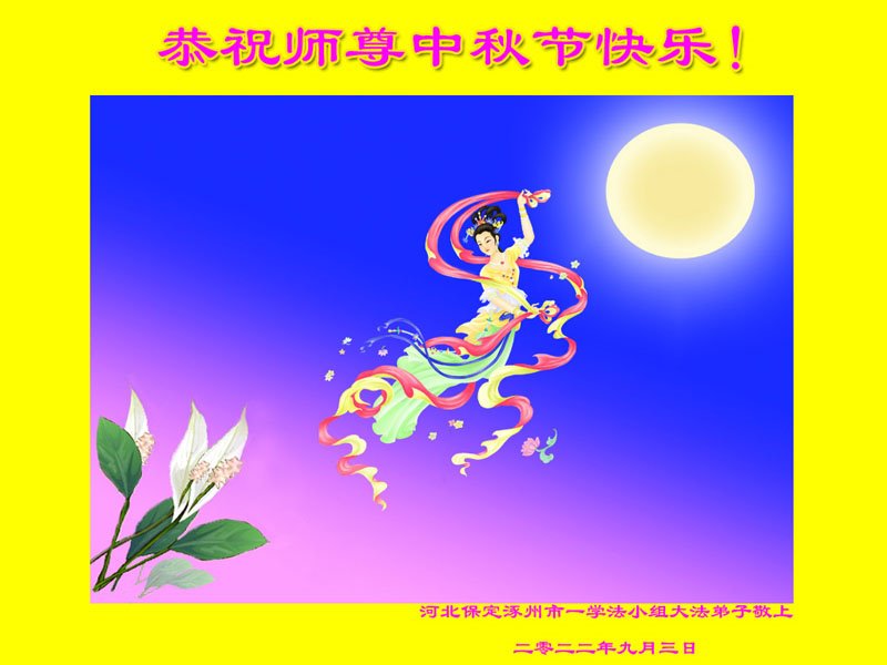 【明慧网二零二二年九月九日】 河北保定定州市一大法弟子恭祝师尊中秋节快乐!