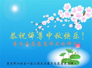 重庆市江北区一家三位大法弟子及家属恭祝师尊中秋快乐!