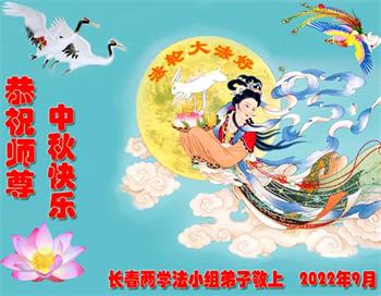 【明慧网二零二二年九月九日】 吉林省长春老年大法弟子恭祝师尊中秋快乐!