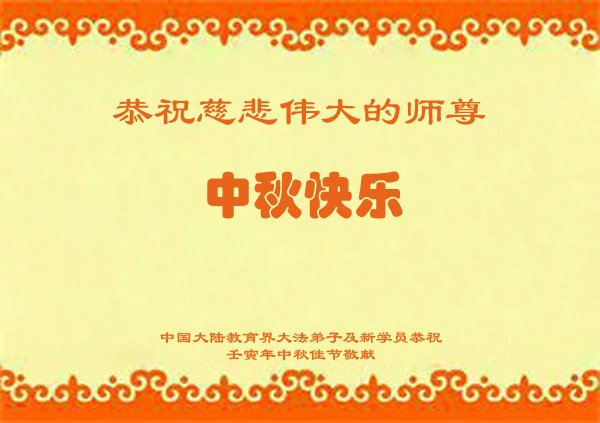 中国大陆教育界大法弟子及新学员恭祝师尊中秋快乐!