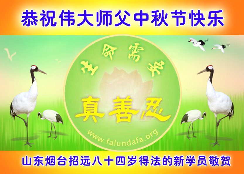 山东烟台招远八十四岁得法的大法新学员恭祝师父中秋节快乐!